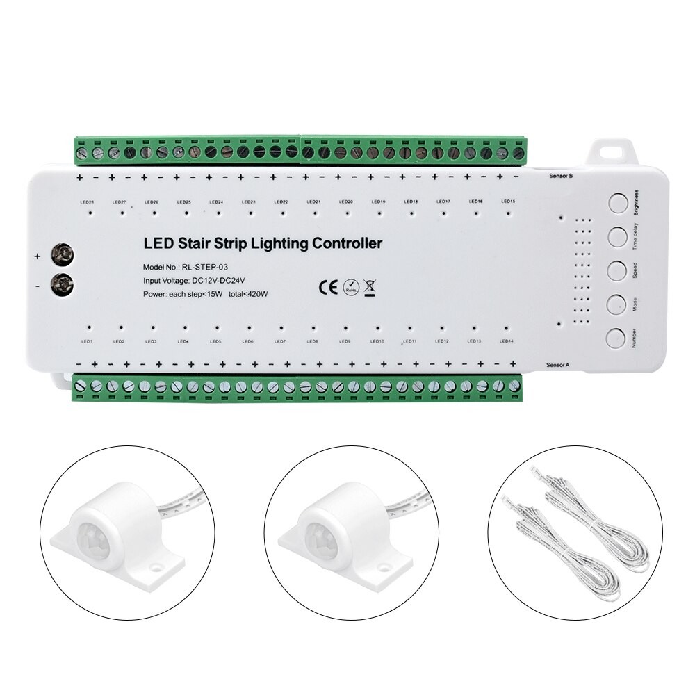 Sterownik schodowy 28-kanałowy 12V/24V max 15W/kanał regulowana jasność i prędkość
